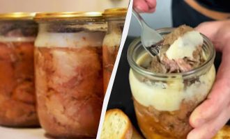 För enkelhets skull, fördela skålen i små burkar med en volym på 300-500 ml. Detta räcker precis för en kruka med borscht.